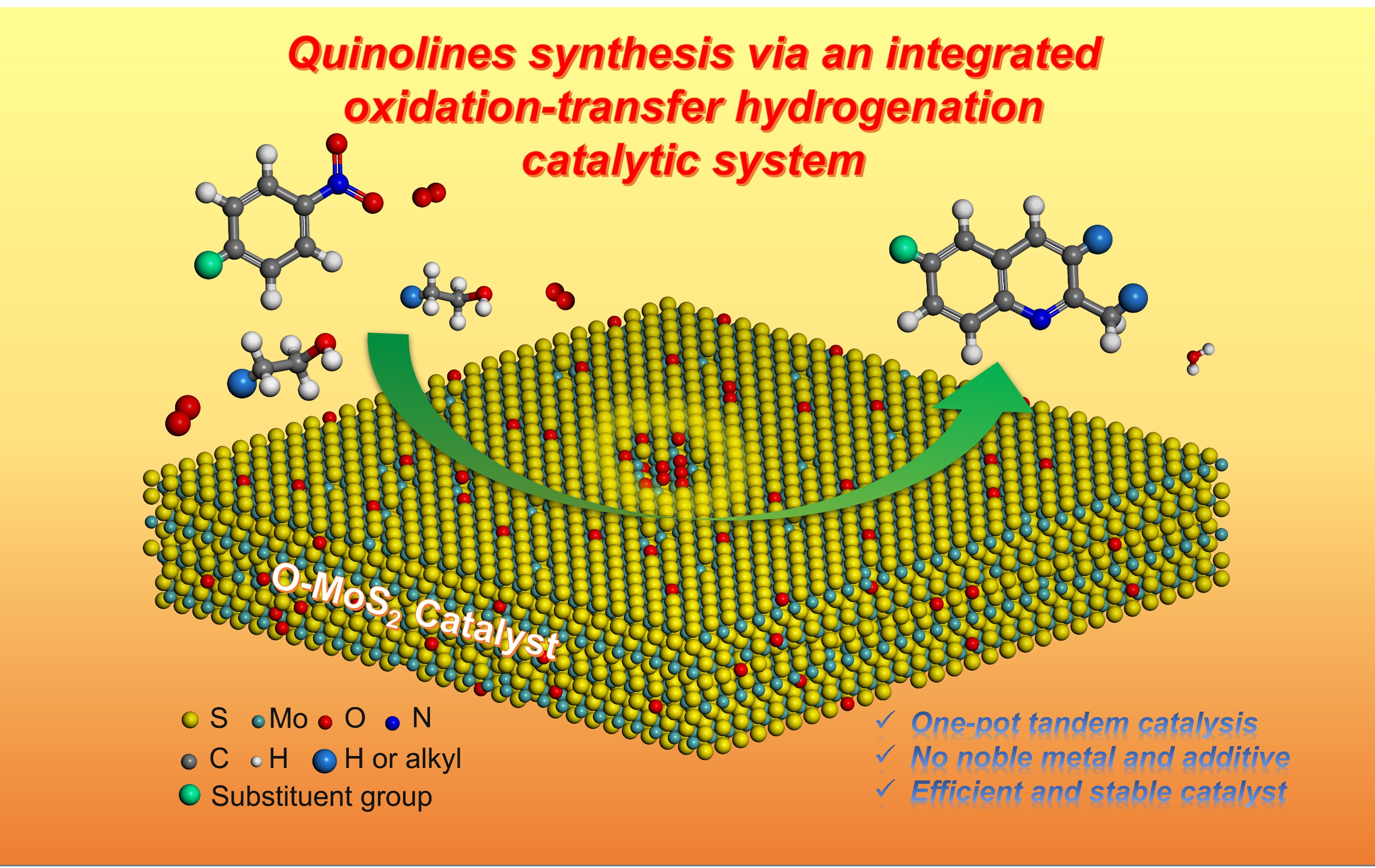 [40] Zhang C. F.*; Gao Z. Y.; Ren P. N.; Lu J. M.; Huang Z. P.; Su K. Y.; Zhang S. C.; Mu J. J.; Wang F.*; Oxygen-implanted MoS2 nanosheets promoting quinolines synthesis from nitroarenes and aliphatic alcohols via an integrated oxidation transfer hydrogenation-cyclization mechanism, Green Chem. 2022, 24 (4), 1704-1713. (期刊论文) ( 本人标注: 唯一第一作者,共同通讯作者)